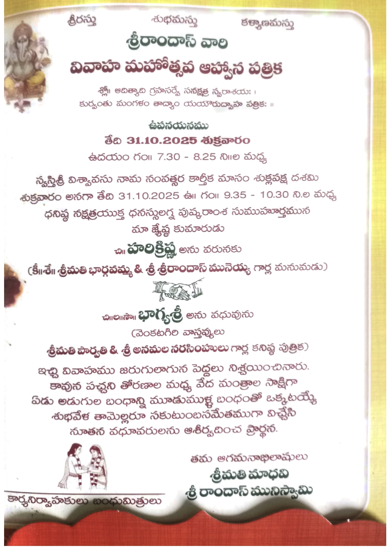 Hari Krishna weds Bhagya Sree